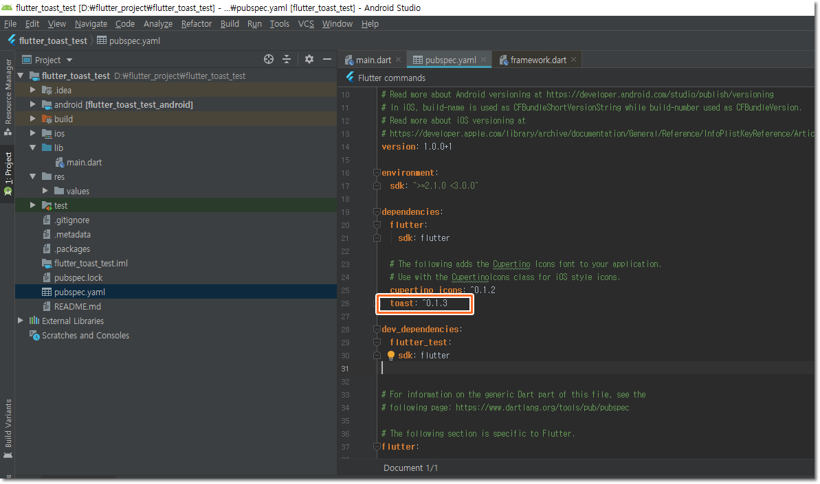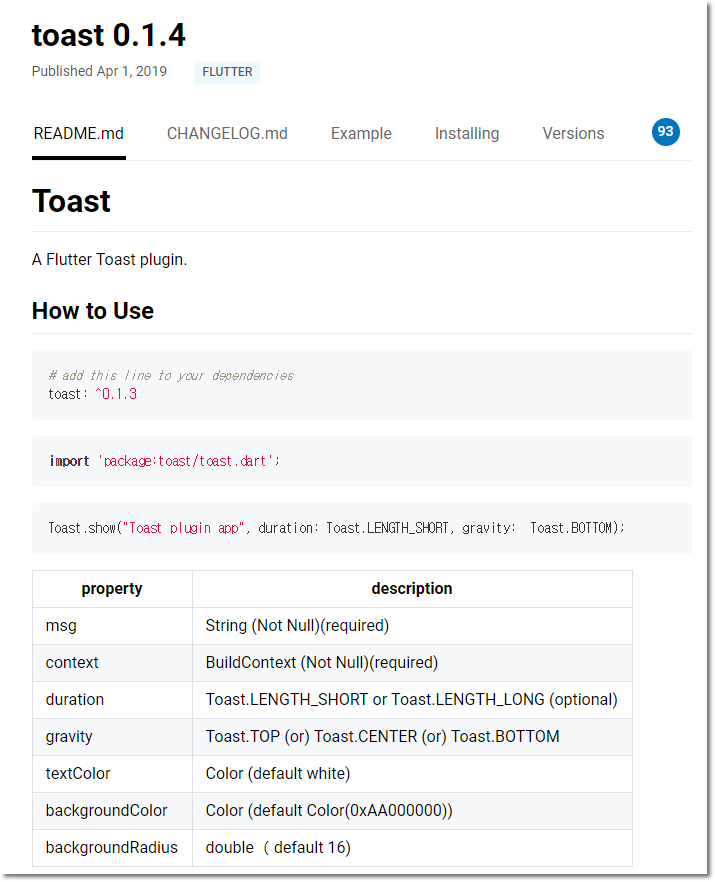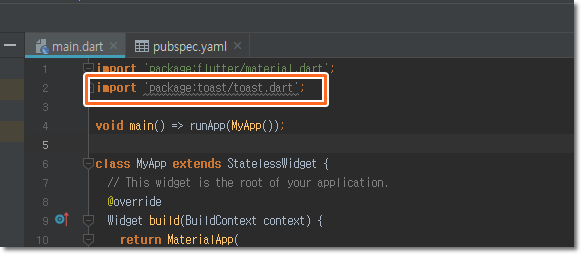 Flutter 플러터 기초 (3) - 플러그인 사용하기. 토스트(Toast) 예제.