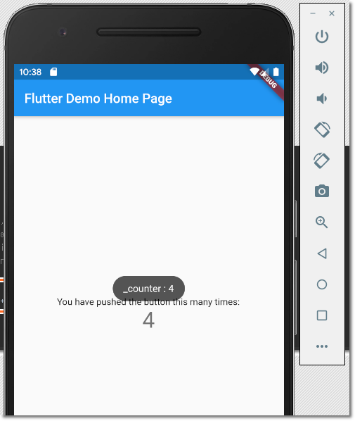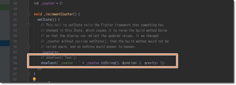 showToast("_counter : " + _counter.toString(), duration: 2, gravity: 1);