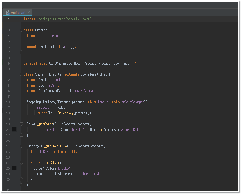 typedef void CartChangedCallback(Product product, bool inCart);