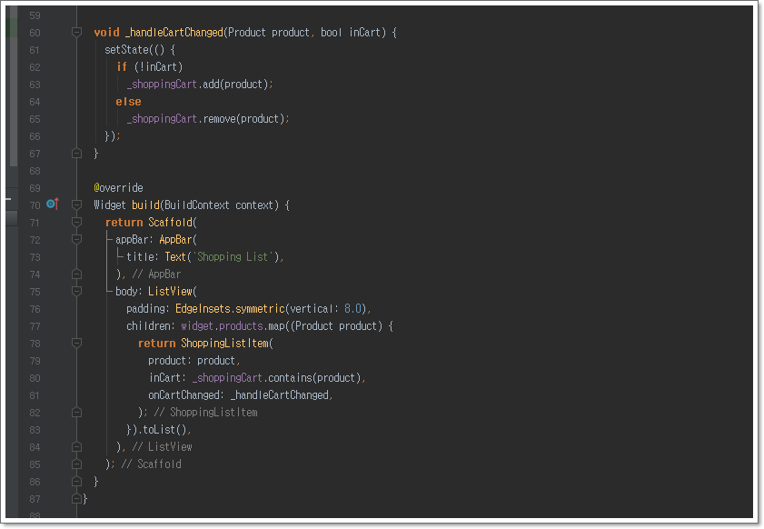 void _handleCartChanged(Product product, bool inCart) {