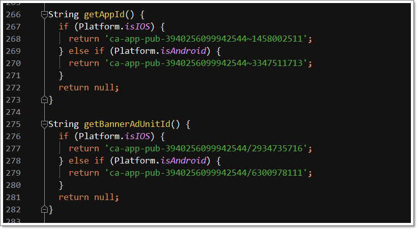 [Flutter] 플러터 - 안드로이드, iOS 구글 애드몹 배너 적용하기. ( Applying Android, iOS Google AdMob banner)