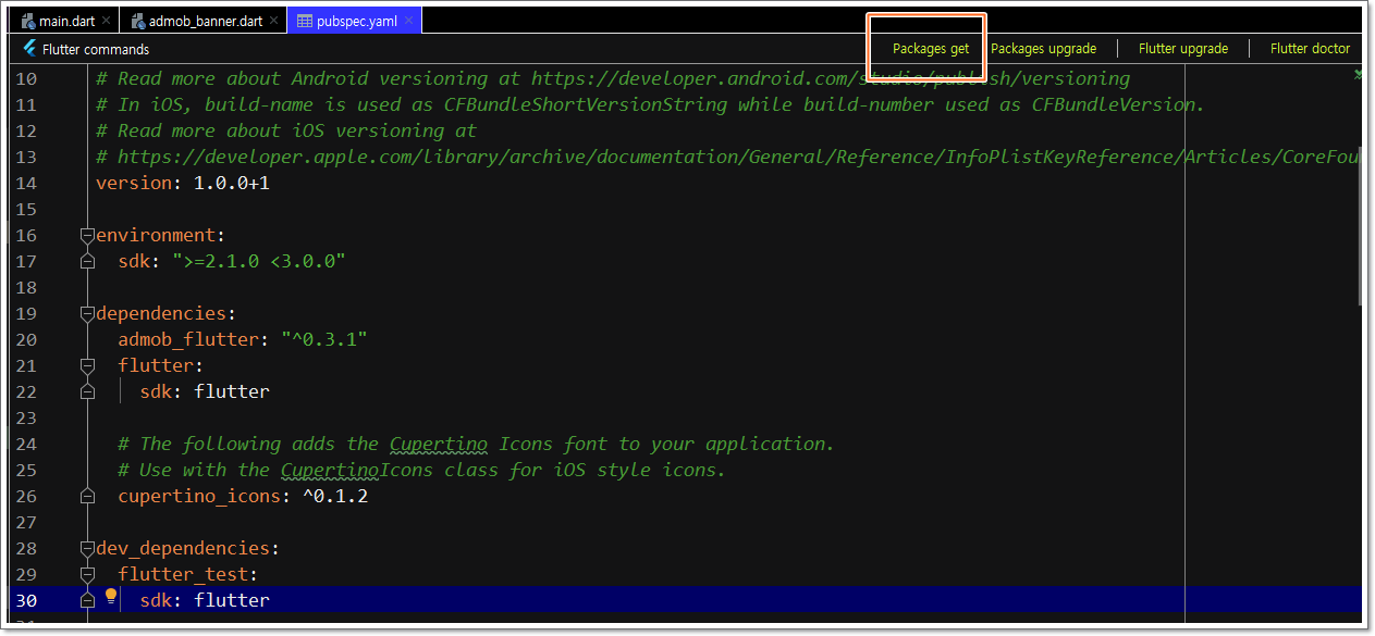 Flutter 플러터 - 안드로이드, iOS 구글 애드몹 배너 달기.(Applying Android, iOS Google AdMob banner)