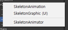 스파인을 유니티에서 사용할 때 요 세 가지 방법으로 사용할 수 있는데 여기서 설명하는 방법은 두 번 째 SkeletonGraphic(UI) 입니다. UI말고 World 에서 쓸 때 단순한거는 SkeletonAnimation, 복잡한( 모션의 종류가 엄청 많고 유니티 메카님 시스템이 본인한테 익숙할 때) 거는 SkeletonAnimator를 사용하면 편하다고 개인적으로 생각합니다.