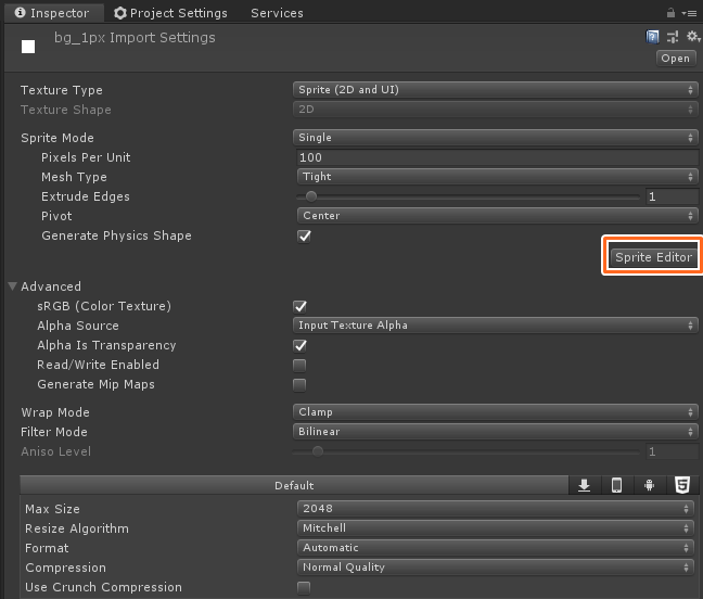 유니티 Sprite Renderer 피봇 설정 변경하기.