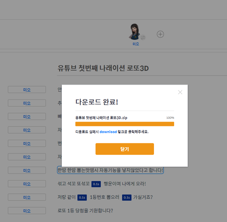 문장별로 다운로드할 수있고, 통짜로도 가능합니다. 옵션으로 선택가능합니다.