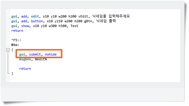[AutoHotKey] 오토핫키 기초: Gui, Submit, NoHid