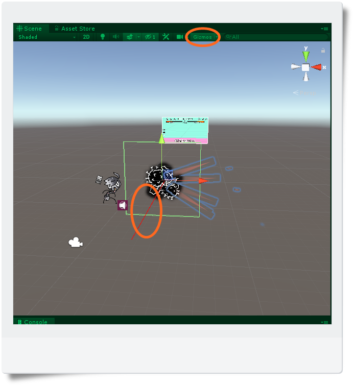 유니티 에디터 Scene뷰 상단 Gizmos를 끄고 작업을 하고 있었는데 끈 상태에서는 Debug.DrawLine이 보이지 않네요. 켜니까 잘보임.