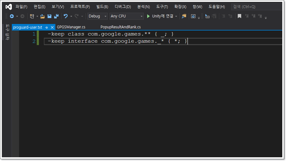 User Proguard File 옵션에 체크를 하면 Assets\Plugins\Android\proguard-user.txt 위치에 텍스트파일이 생기는데