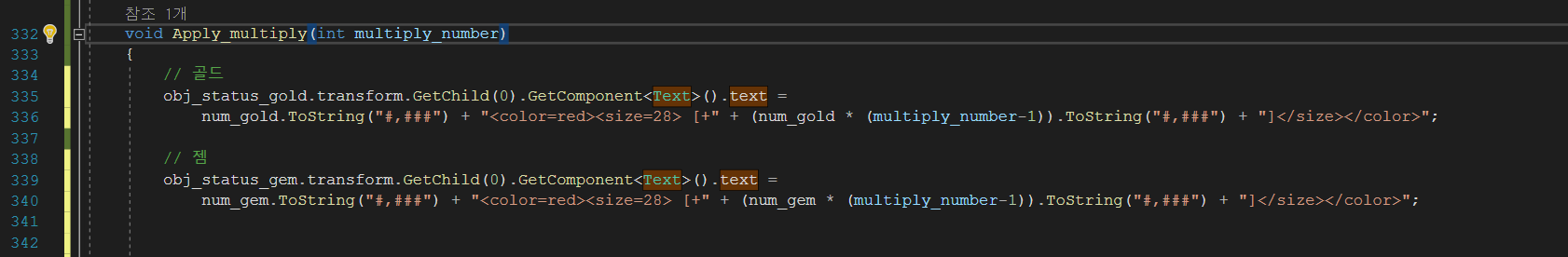 [Unity] 유니티 문자열 텍스트 폰트 색상, 사이즈 스크립트에서 처리하기 ( String text font color, size handled in script )