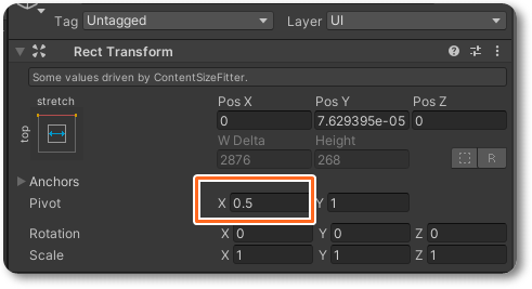반대로 Vertical을 사용할 경우에는 Pivot Pos Y를 0.5로 바꿔주면 해결됩니다.