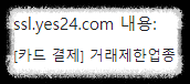 카드번호 똑바로 넣었고, 작년에도 예스24에서 구매한거 같은데 올해도 yes24에서 구매하려는데 자꾸 거래제한업종이라고 뜬다.