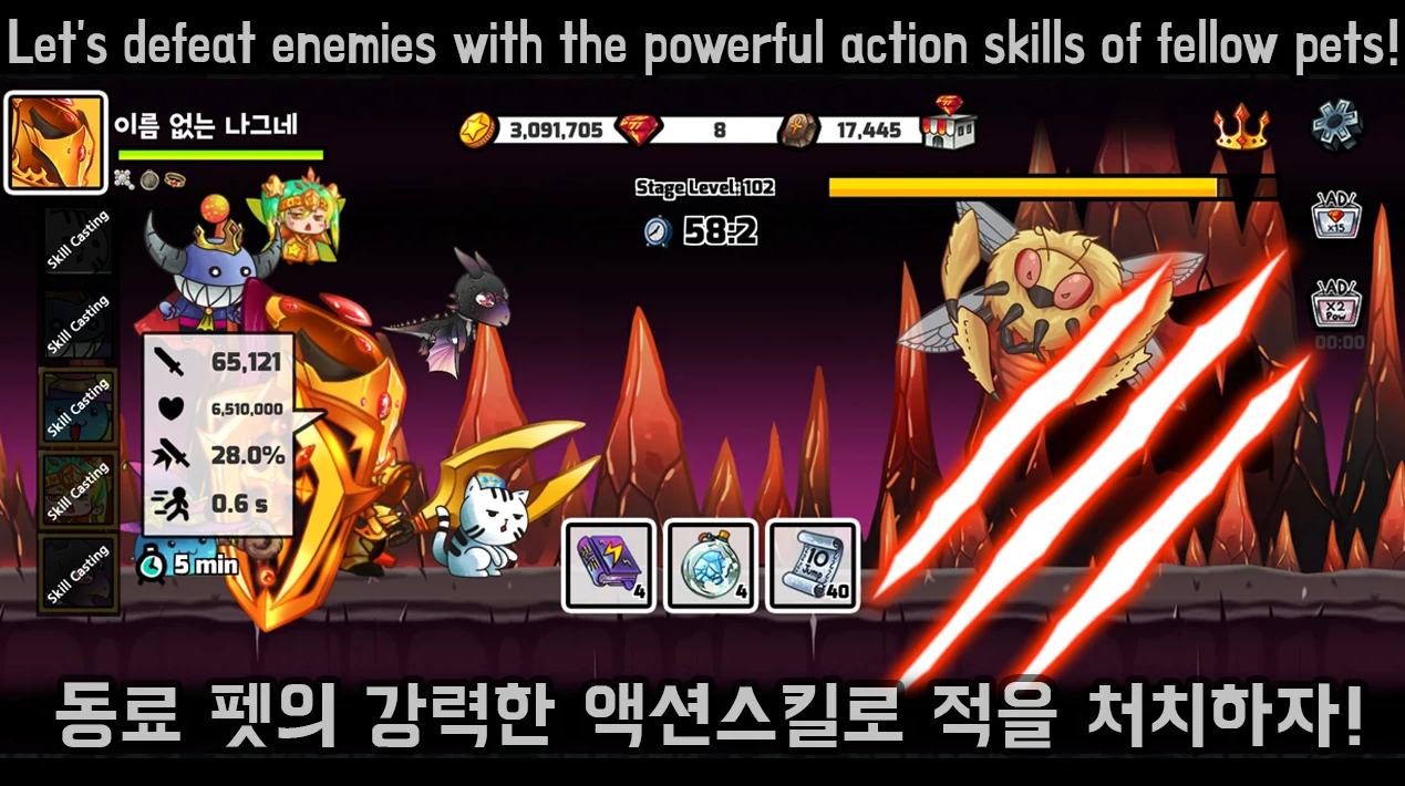 - 다양한 펫을 구매하여 해당 펫의 고유 스킬을 사용하여 더욱 강력한 공격을 해봐요!