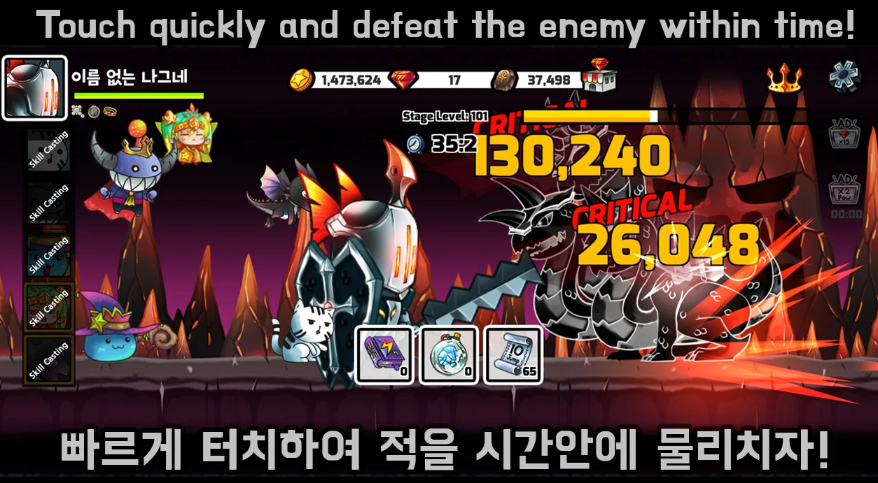 화면의 몬스터를 터치하면 타격감 가득한 어택 모션!