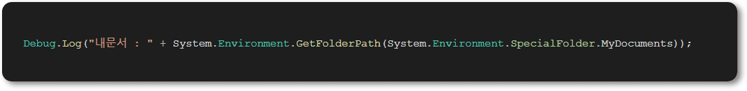Debug.Log("내문서 : " + System.Environment.GetFolderPath(System.Environment.SpecialFolder.MyDocuments));