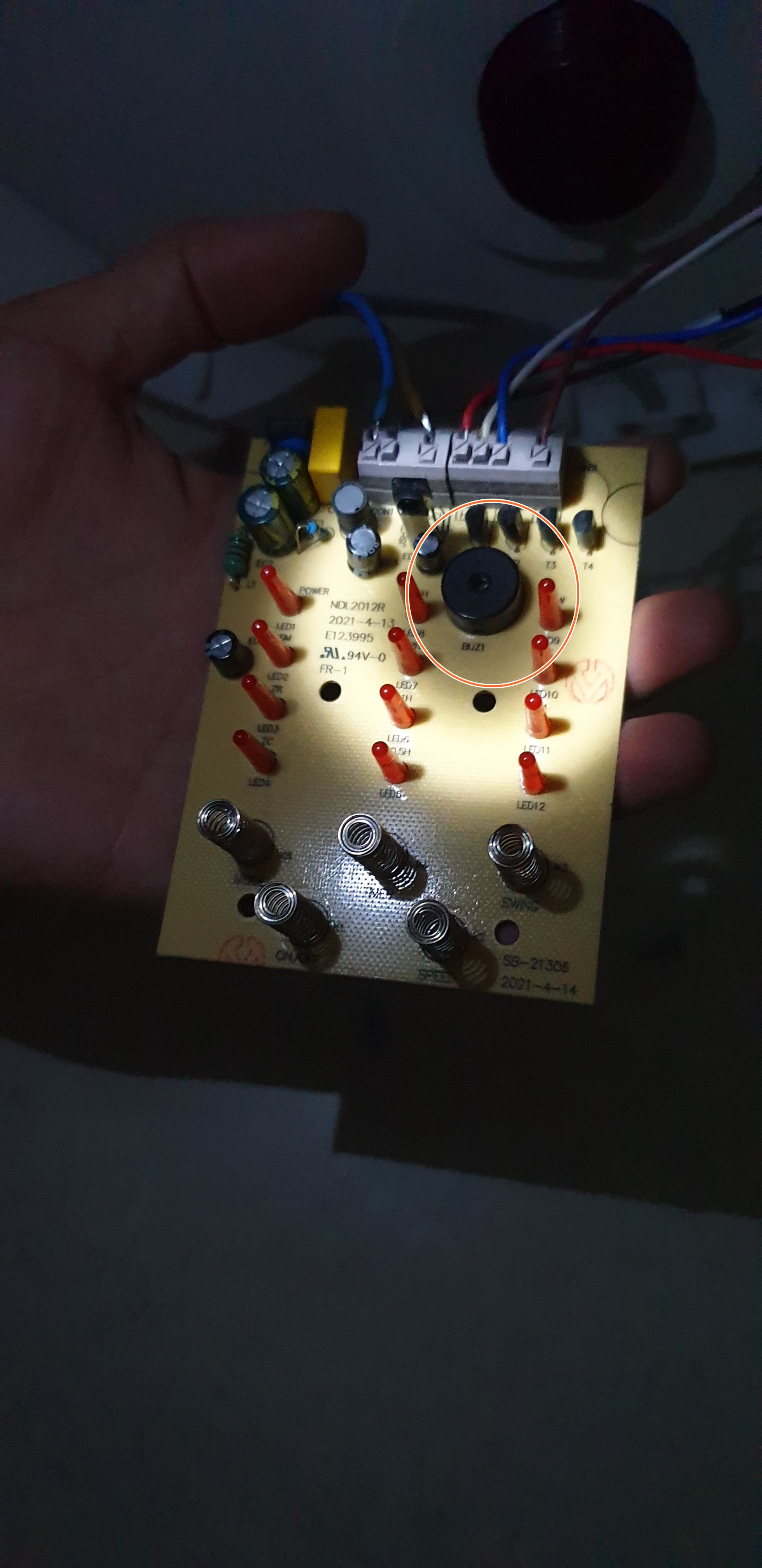 일단 선풍기 하판쪽 나사를 다 풀고 기판을 살펴본다. 애들 자는 시간이라 거실에 불을 켜지 않고 어둡게 그냥 5분만에 작업했다.