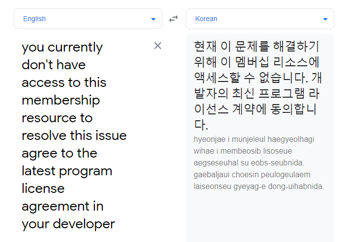 Xcode에서 Signing & Capabilities 에서 Signing Team을 선택했을때 you currently don't have access to this membership resource to resolve this issue agree to the latest program license agreement in your developer 에러 뜰때