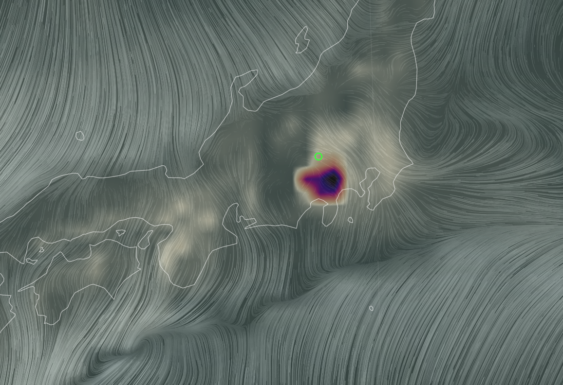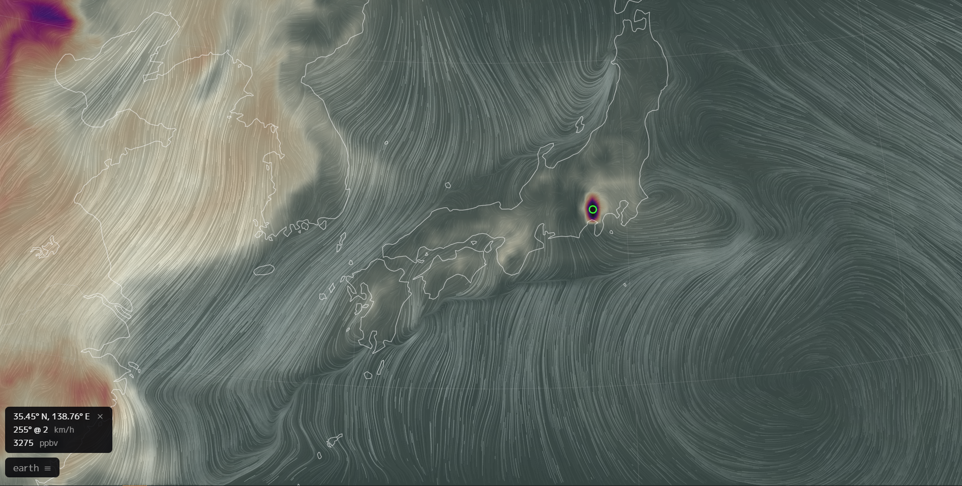 ▶▶earth.nullschool.net https://earth.nullschool.net/#current/chem/surface/level/overlay=cosc/orthographic=-221.28,35.29,14699/loc=138.759,35.448