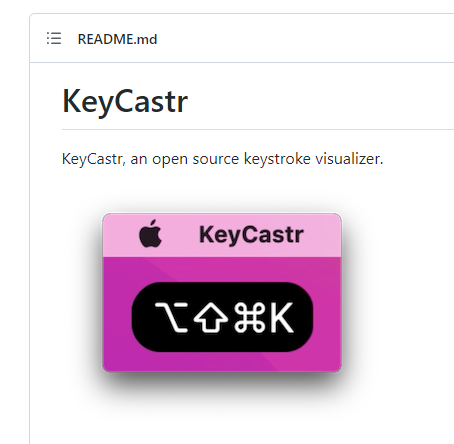 KeyCastOW 라는 프로그램이 있다. 이것은 모니터에 내가 어느 키를 타이핑했는지 보여준다. 그래서 강의 목적의 영상을 제작할 때 유용하다. GitHub https://github.com/brookhong/KeyCastOW brookhong/KeyCastOW..