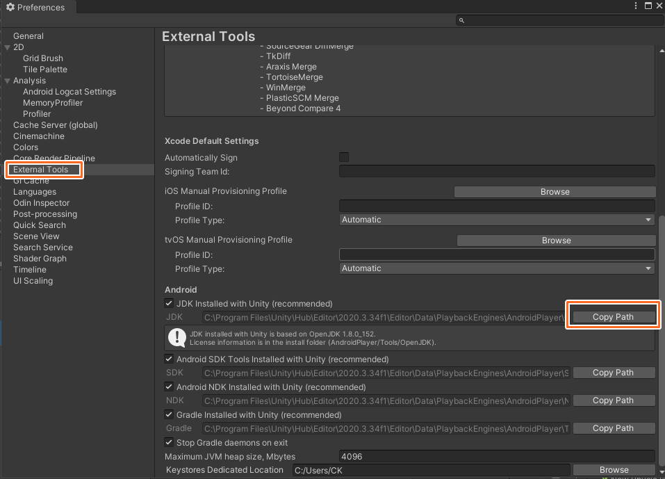 따로 JDK를 설치하지 않고 Unity 설치할 때 포함된 Open JDK의 경로를 알아보기 위해