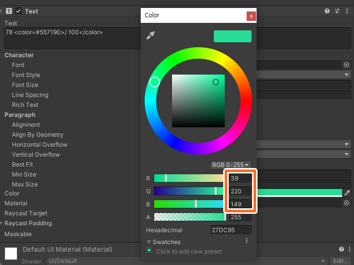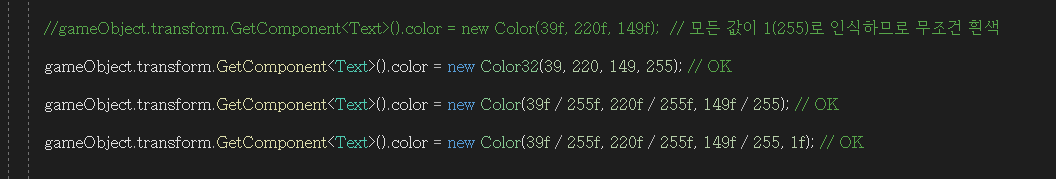 [유니티] 스크립트 내에서 RGB 컬러값 입력 시 흰색으로만 나올 때 When inputting RGB color values in the script, only white is displayed