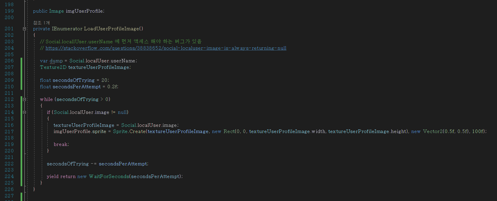 유니티 GPGS(구글플레이게임서비스) Social.localUser.image 가 제대로 get 되지 않을 때 When Unity GPGS Social.localUser.image value is not obtained properly