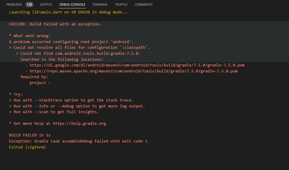 FAILURE: Build failed with an exception. * What went wrong: A problem occurred configuring root project 'android'. > Could not resolve all files for configuration ':classpath'. > Could not find com.android.tools.build:gradle:7.5.0. Searched in the following locations: