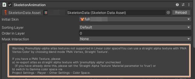 [Unity] warning premultiply alpha atlas textures not supported in linear color space you can use a straight alpha texture with pma vertex color by choosing blend mode pma vertex, straight texture