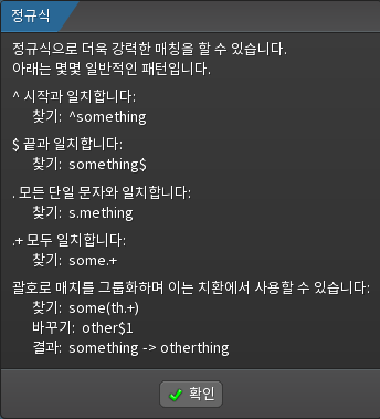 그리고 정규식에 관한 설명창이다.