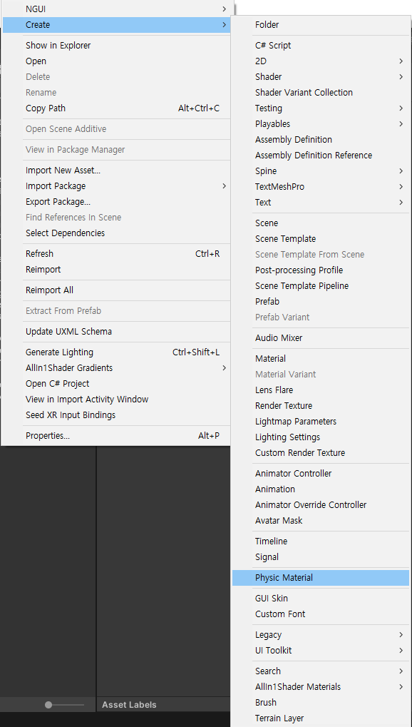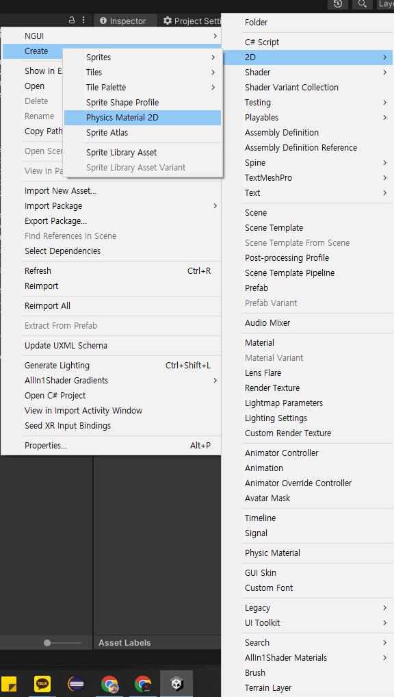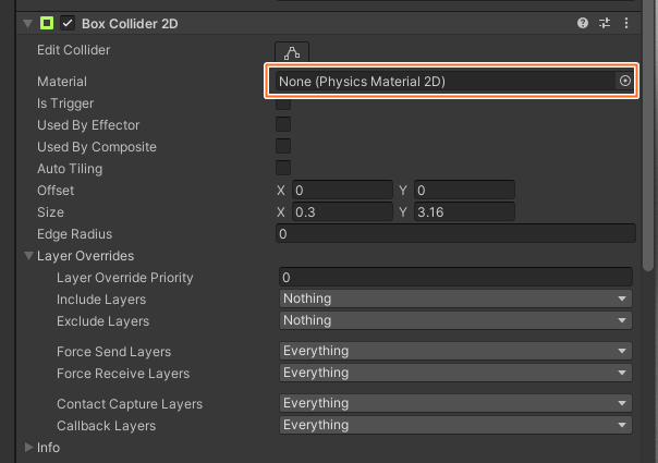 강제 등반, 떨림현상이 일어나지 않게 하기 위해서는 Collider의 Material을 3D게임의 경우 Physic Material을 2D게임의 경우 Physics Material 2D 새로 생성해서