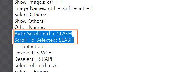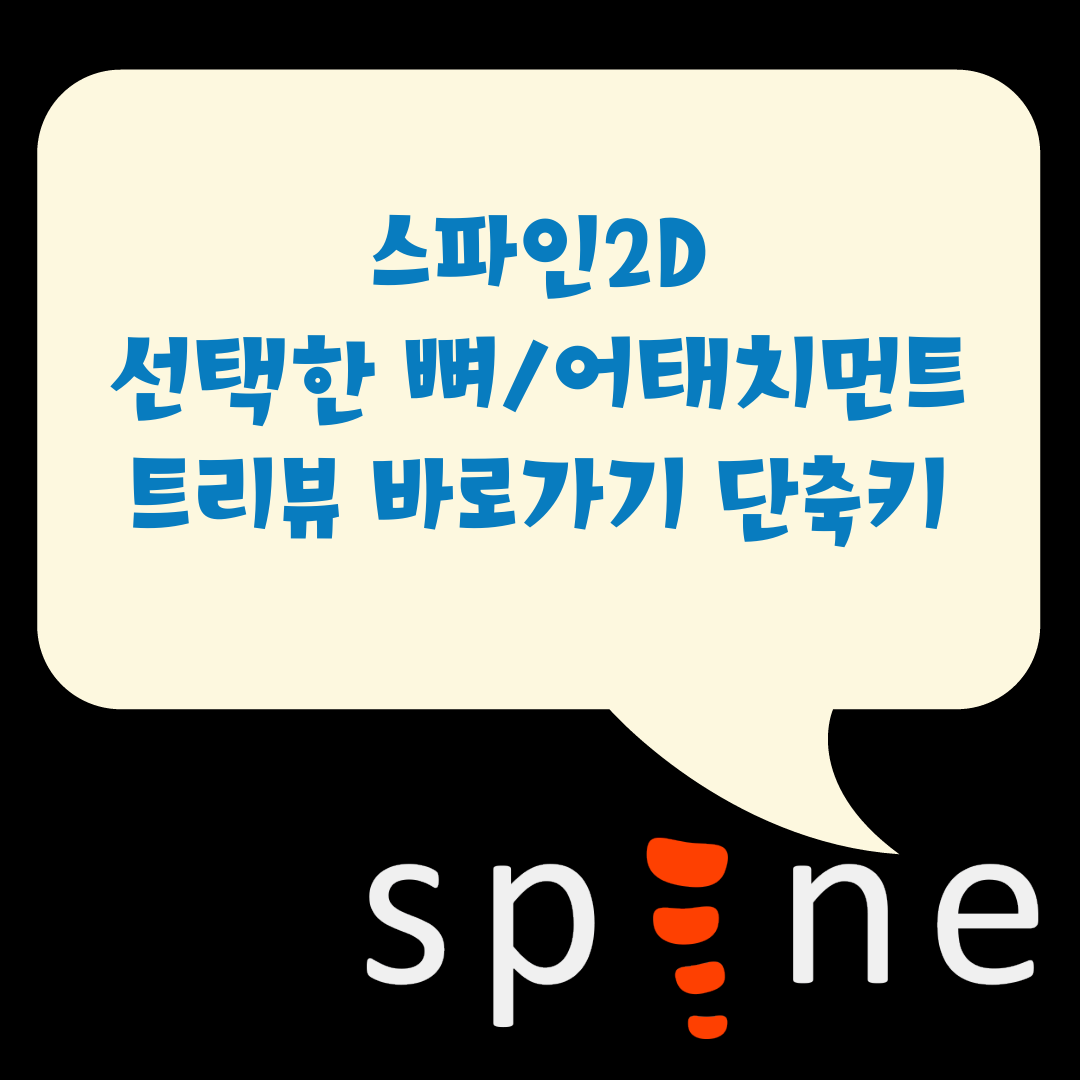 스파인2D에서 기본 설정으로는 선택한 뼈, 어태치먼트 트리뷰 바로보기 단축키는 SLASH(슬래시, '/') 이다.