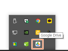 그럴땐 다음과 같이, 작업표시줄 우측 시스템트레이의 숨겨진 아이콘메뉴의 구글드라이브 아이콘 클릭 후