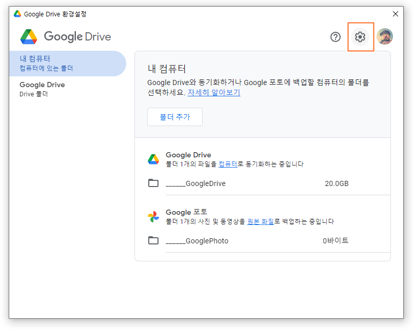 필자는 Google Drive의 Drive 폴더는 용량을 줄이기 위해 '파일 스트림' 방식으로 하고 내 컴퓨터 폴더는 '파일 미러링' 방식으로 사용한다.