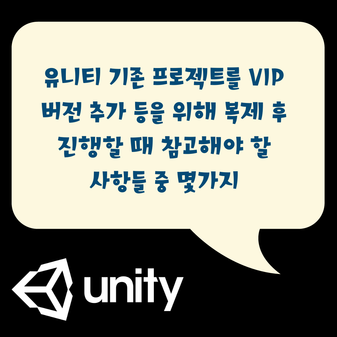 유니티 기존 프로젝트를 VIP 버전 추가 등을 위해 복제 후 진행할 때 참고해야 할 사항들 중 몇가지