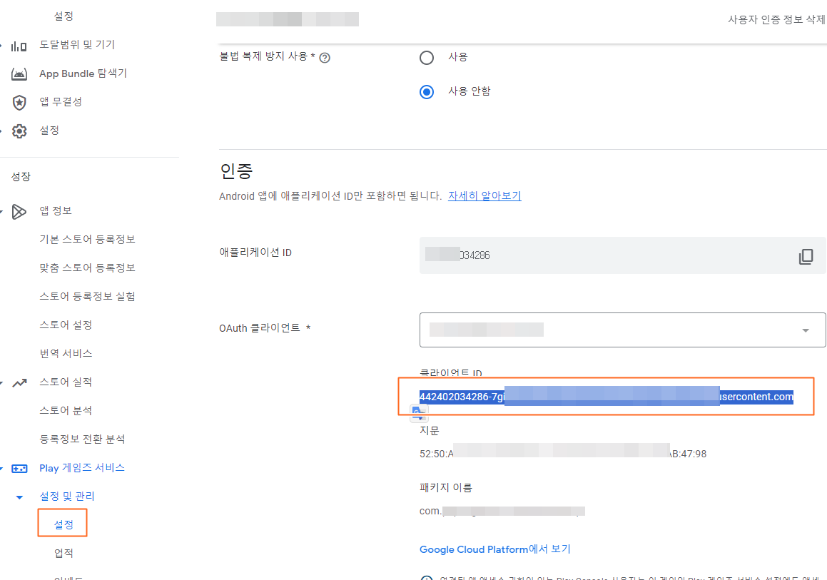 2. GPGS 관련 설정