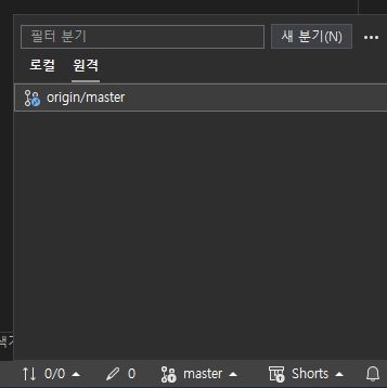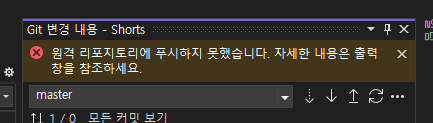 원격 리포지토리 주소는 VS Git 원격설정에서 당연히 해놓은 상태입니다.