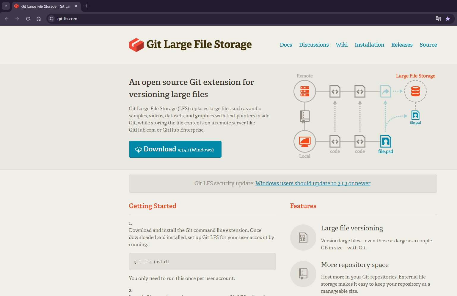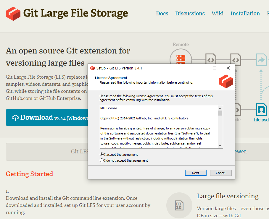 Git LageFileStorage 설치파일 Download 해서 설치 후,