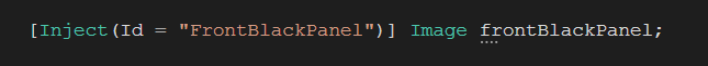 사용하고 싶은 스크립트에서 [Inject(ID = "FrontBlackPanel")] 애트리뷰트를 사용해서 저렇게 선언을 하면 바로 사용가능하다. 혹시라도 Image 컴포넌트가 씬에 하나밖에 없다면(?) ID를 생략하고 [Inject] 만 써도 된다.