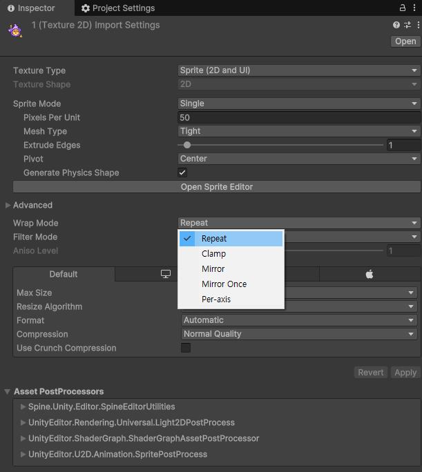 - Wrap Mode를 Repeat로 변경합니다.