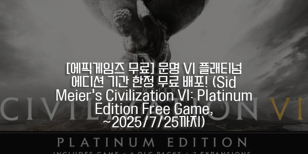 안녕하세요! 게임 팬 여러분께 정말 놀라운 소식을 전해드립니다. 에픽게임즈(Epic Games)에서 전략 시뮬레이션 게임의 살아있는 전설, **'시드 마이어의 문명 VI 플래티넘 에디션(Sid Meier's Civilization VI: Platinum Edition)'**을 기간 한정으로 완전 무료 배포하고 있습니다!