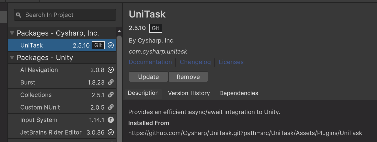 [Package Manager Window] Error adding package: https://github.com/Cysharp/UniTask.git?path=src/UniTask/Assets/Plugins/UniTask.