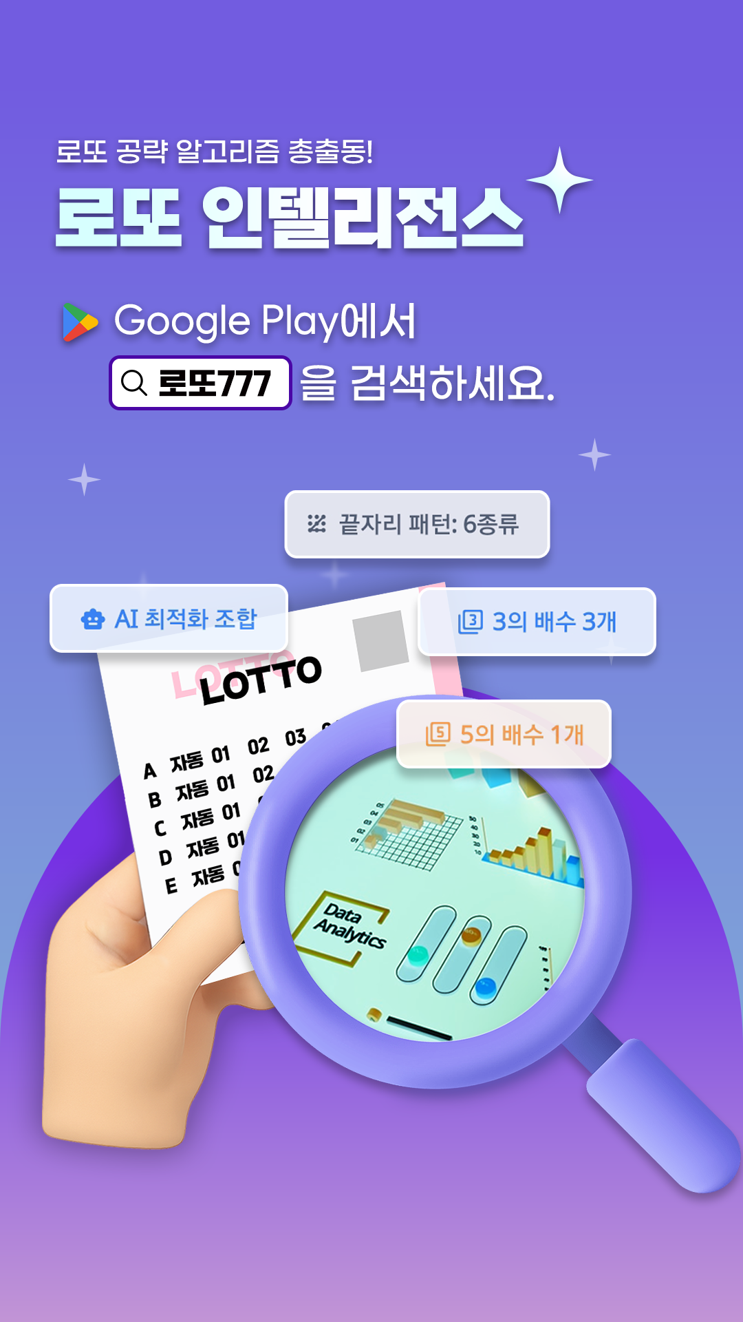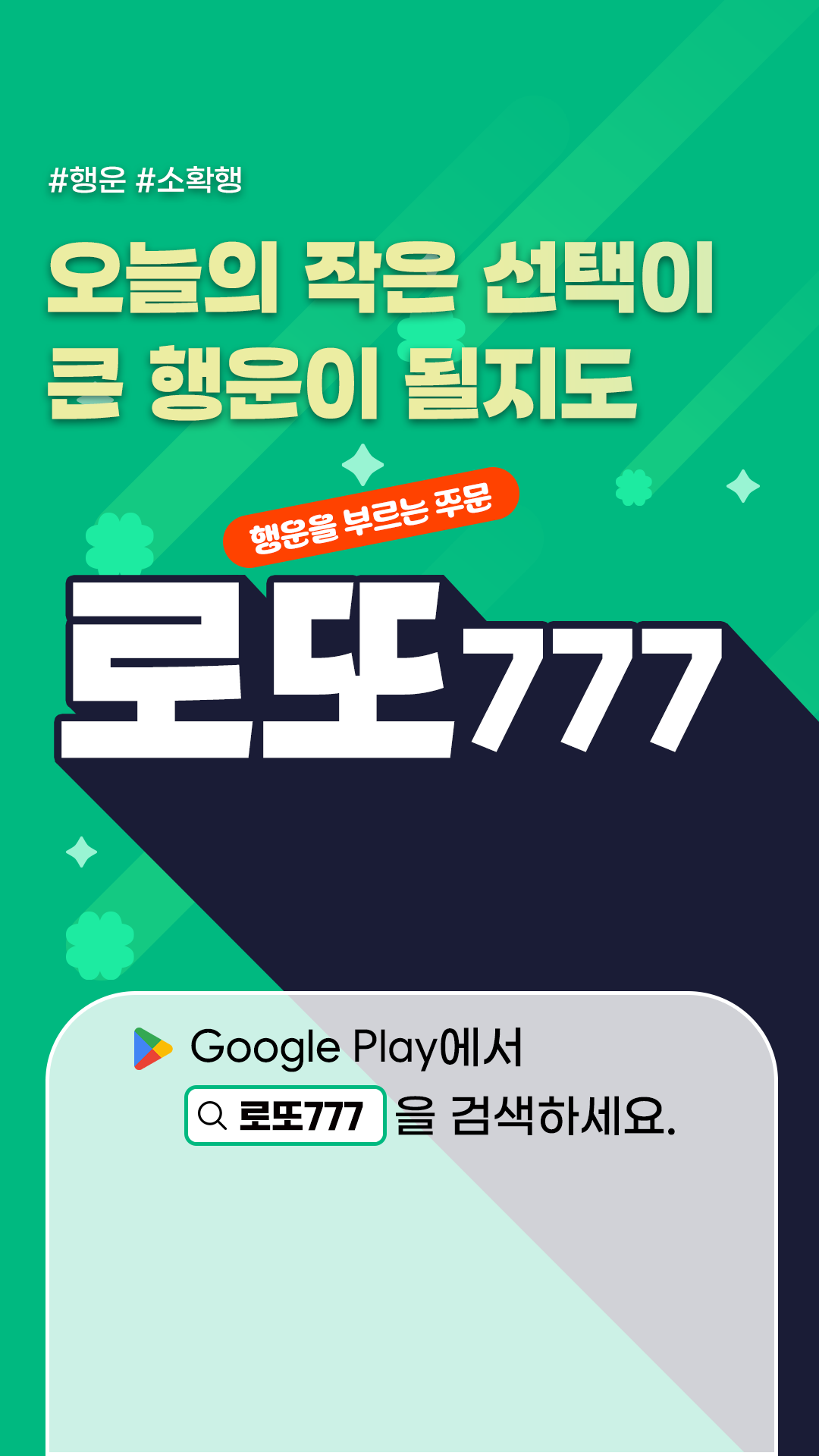 이미 수많은 사용자가 선택한 로또 777 앱은 아래 구글플레이 링크를 통해 바로 설치하실 수 있습니다. 이번 주 1등의 주인공이 여러분이 되길 진심으로 응원합니다!
